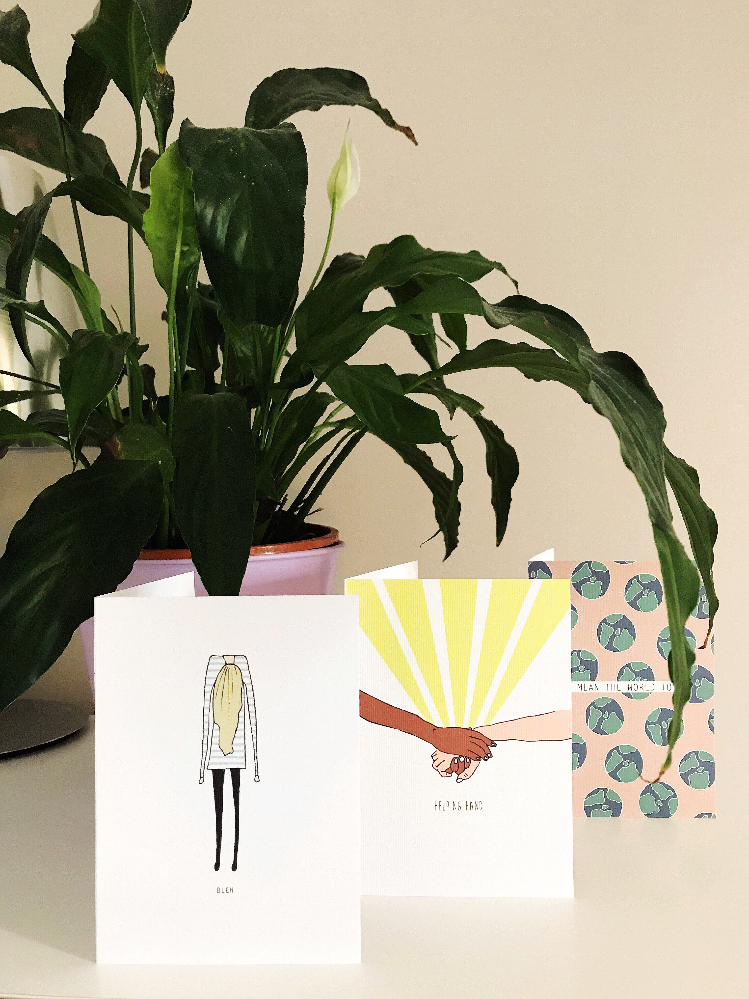 “My main aim is to try and make a difference with my designs; ‘A Little Moonbeam’ represents the little ray of light I wish to create for people during their day. I use daily life as my main inspiration as I think it’s significant to be relatable – it makes people laugh and also feel comforted. My style overall is quite minimal and sketchy but I love my pops of colour! I really try my best to be as eco-friendly as possible, always considering the paper types and packaging that I use. I also work with several charity groups that support mental health, with £1 of each print being donated and the odd event to raise money!”