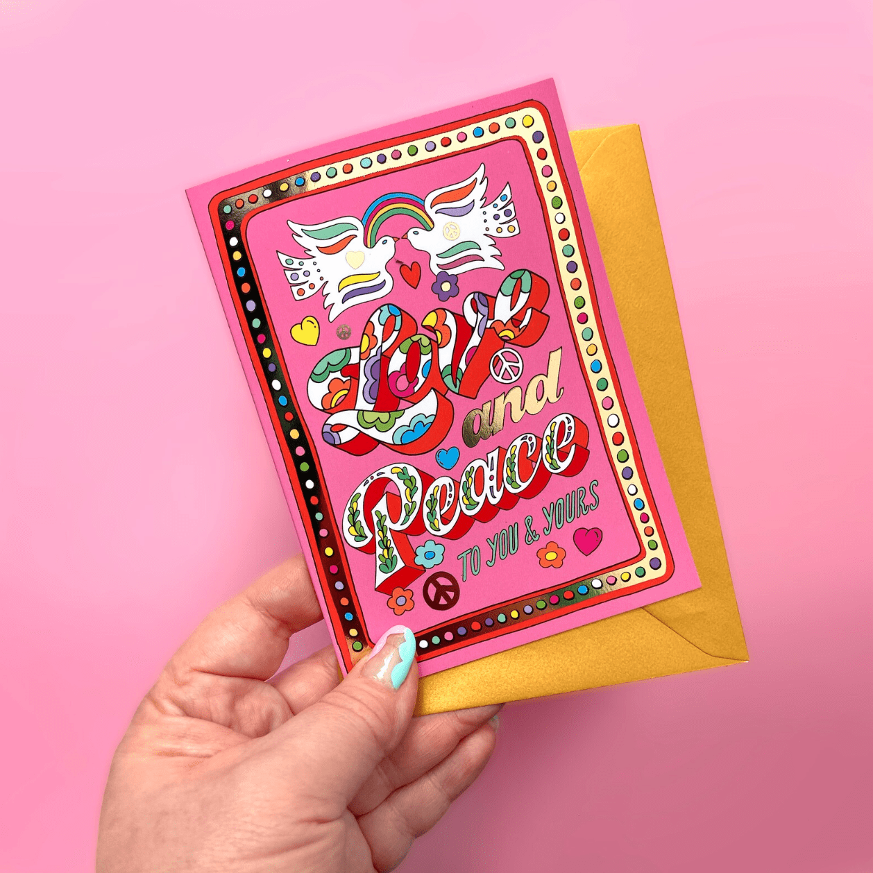 Gold, Silver, Red or maybe even Holographic? Whatever foil you go for, you’re guaranteed to create standout for your Greeting Cards. Foiling adds a beautiful shine to your design as well as making your print feel more luxurious. You might choose to highlight small elements of your design or go all out with a foiled background. We love how Liz Harry has highlighted the border and text elements in this design.