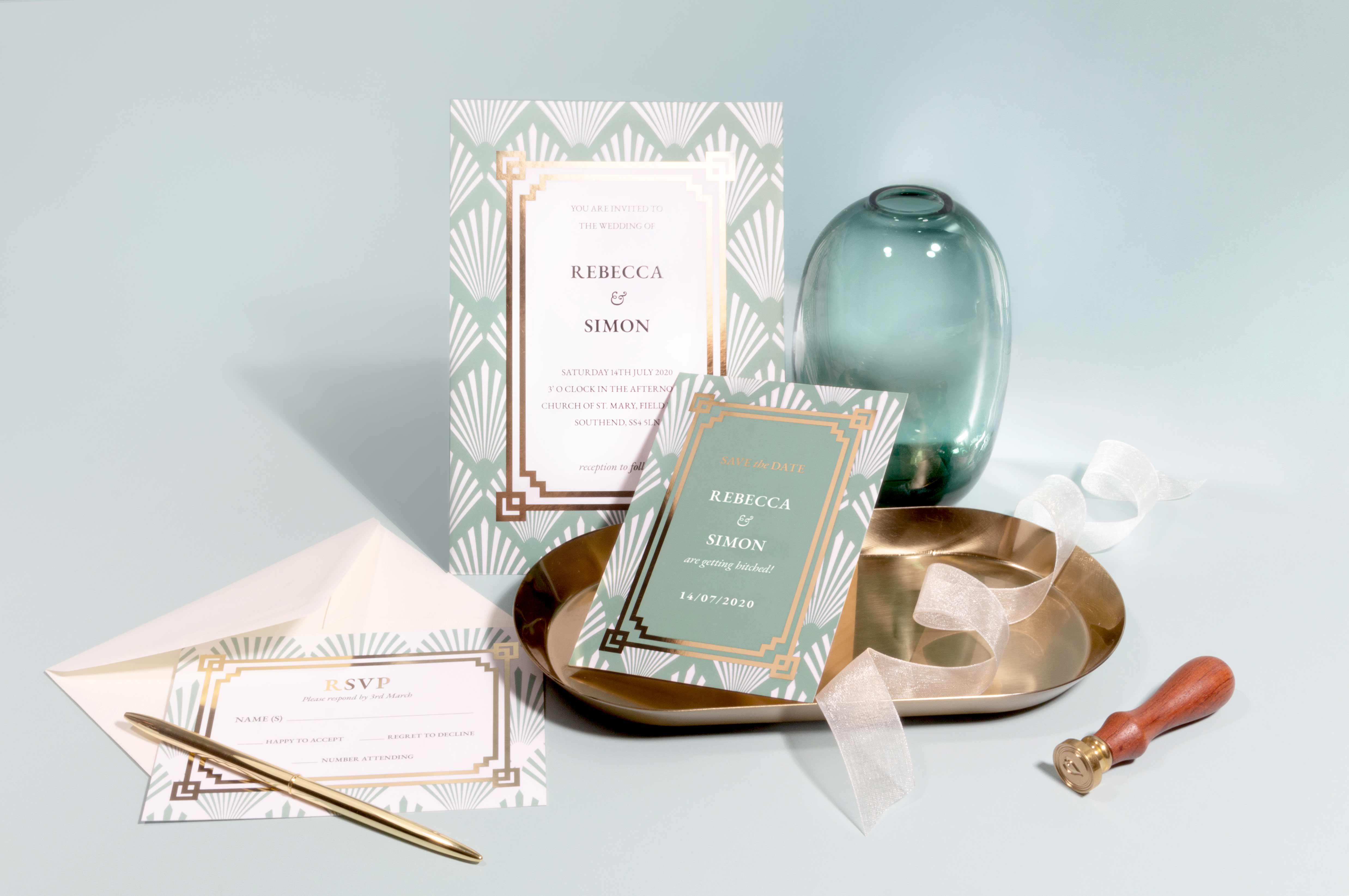 We’re no stranger to the Art Deco trend, and back in 2019 we created this stunning FREE Wedding Stationery suite download for our customers.