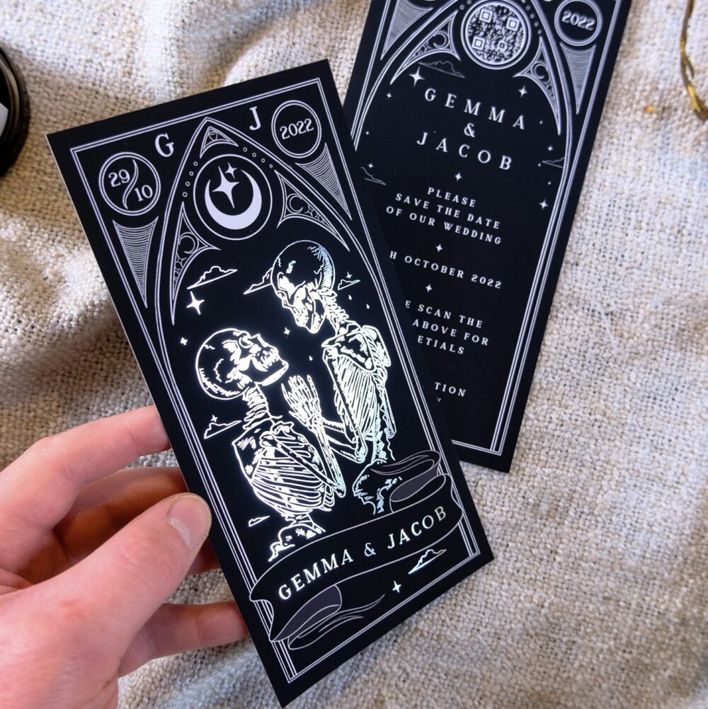 George and Joshua at Bird House 197 have a very special place in our hearts, and are the first of our runner-ups. Alternative Wedding Stationery with a twist, their incredible designs are a unique take on spirituality, and explore a range tarot card themes with stunning Digital Foil accents.