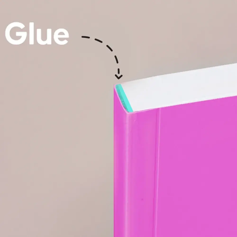 Individual pages are stacked together then glued along the spine with a strong yet flexible adhesive to create our Perfect Bound books. The pages are trimmed to create a beautiful, clean edge, then the cover is attached with glue. Perfect Bound is ideal for creating professional paperback books.