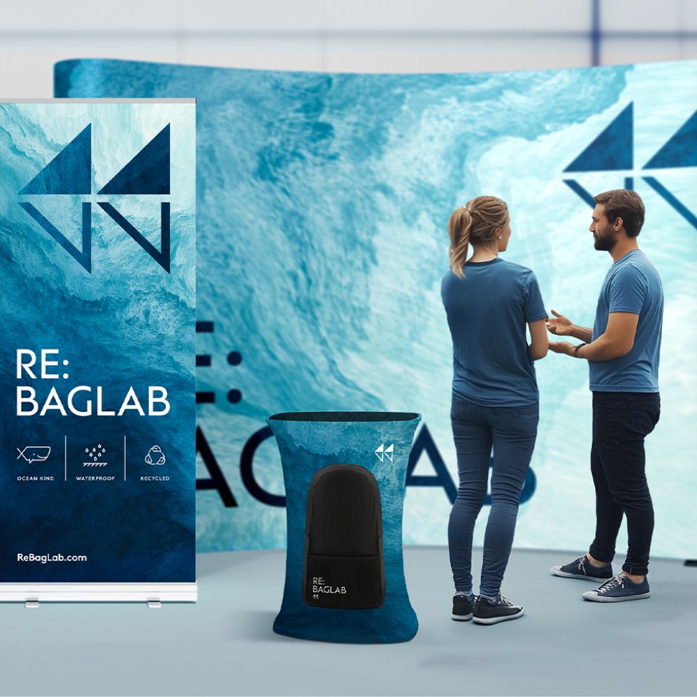 Telescopic Tension Banners are built for versatility, making it easy to adapt to any event space. Made from 100% recycled ocean waste, the recycled polyester fabric highlights sustainability without sacrificing quality.