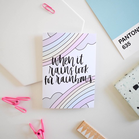 Rain = rainbows. It is one of the few positives we can take from the unpredictable British weather! This pastel-perfect Greeting Card masterpiece by AV Typography reminds us that the storm will pass eventually.