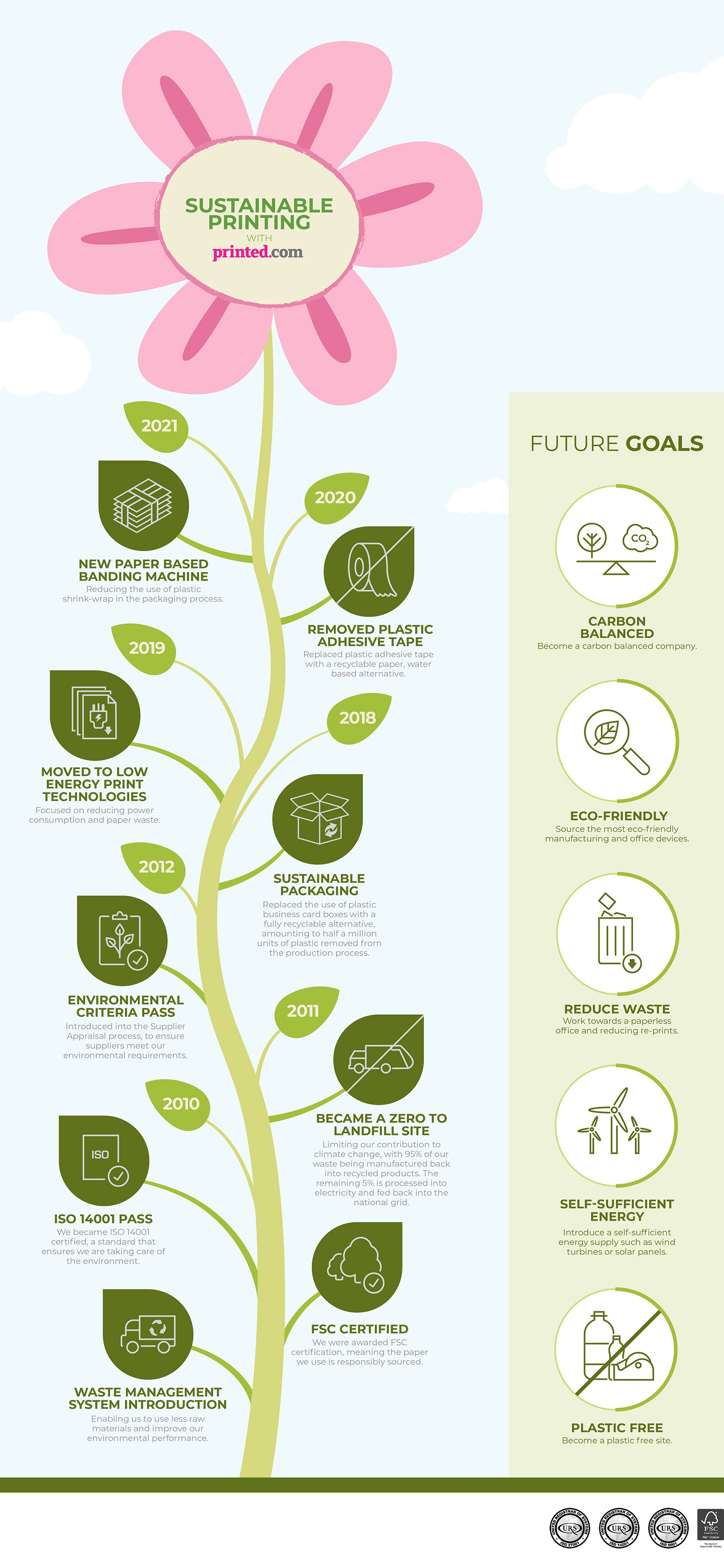 We’ve put together the below timeline to show how we’ve got greener over the years. We’ve still got a way to go, but are super proud to stand apart from our competitors when it comes to both sustainable print products and print processes.