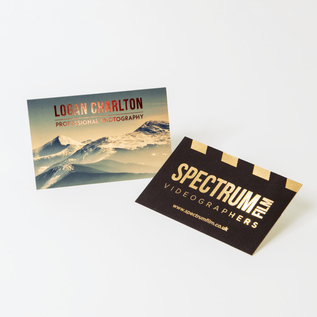 As a rule of thumb, make sure your artwork uses a font size 8 or above. Anything smaller and again, the foiling won’t be able to stick properly to your design. The above Business Card designs are a great example of how digital foiling a chunky type face can create something really eye-catching, and it provides enough surface area for the foil effect to really do it’s thing!