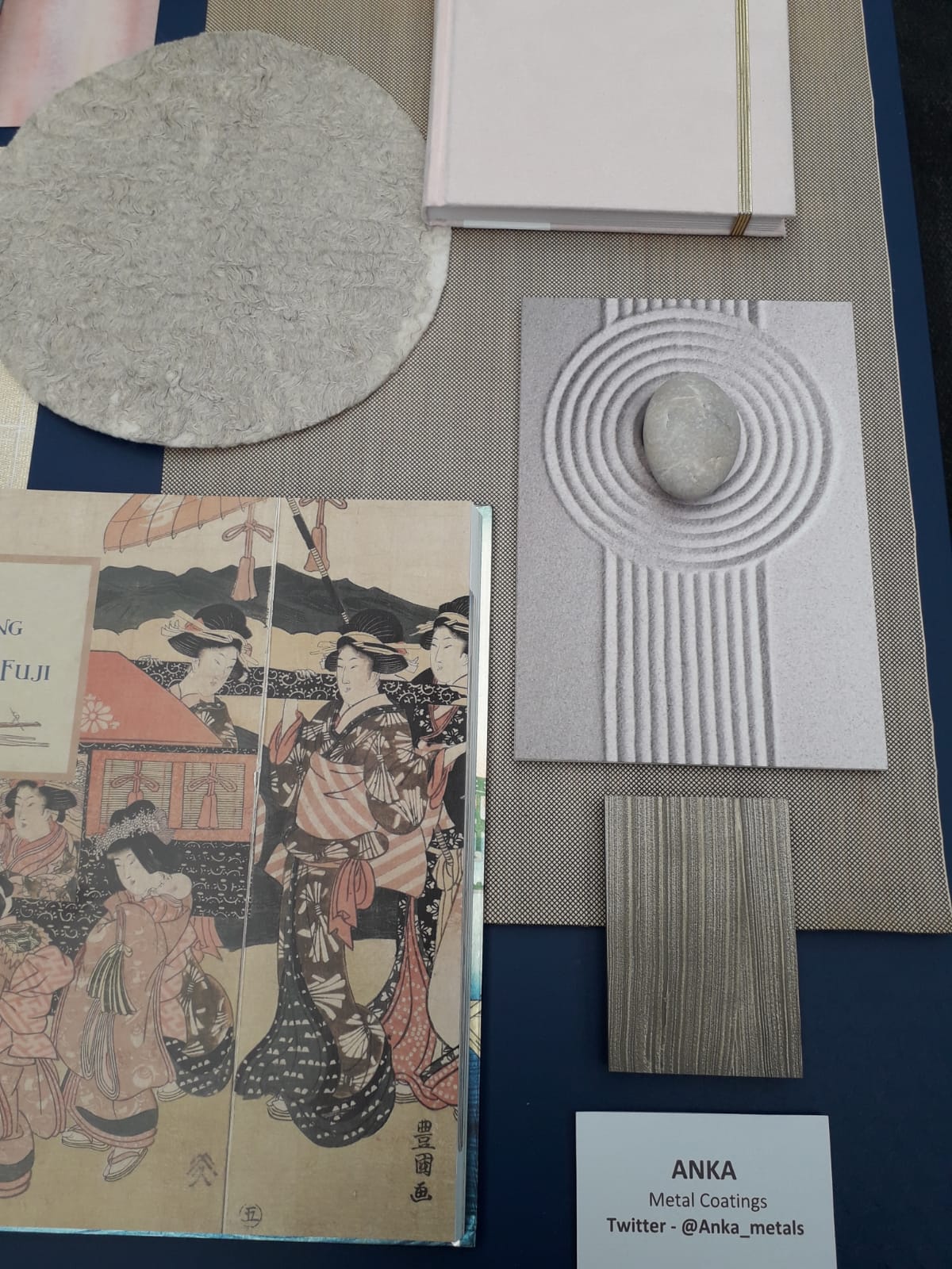 Textures like sand and grooves, inspired by zen gardens