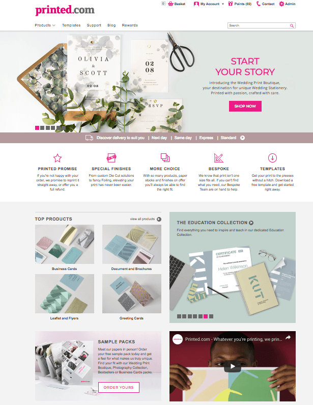 Our homepage has also undergone a little bit of tweaking to make it easier to get straight to the print you need. We’ve bought our collections and top products to the forefront, and added a quick and easy link to our free sample packs. Plus, our delivery options are all now listed in the handy banner too.